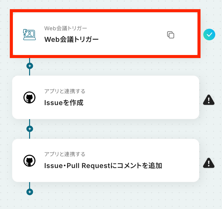 - Web会議のトリガー設定とGitHubのアクション設定