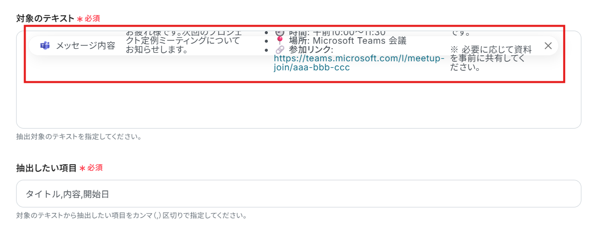 Microsoft Teamsで特定条件の会議情報が投稿されたら、データを抽出してNotionに追加する