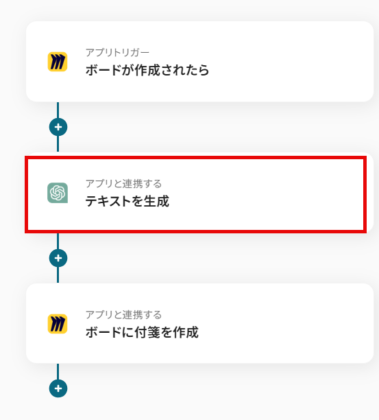 このワークフローを活用すれば、Miroで新しいボードが作成されると、その情報をChatGPTが自動で解析し、要点やタスクを付箋としてボードに自動追加します。