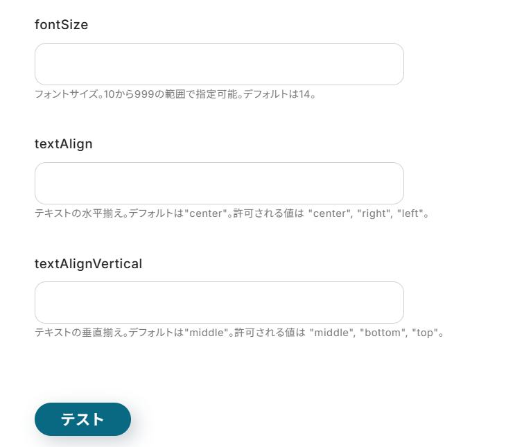 その他の項目は任意で入力し、「テスト」をクリックします。