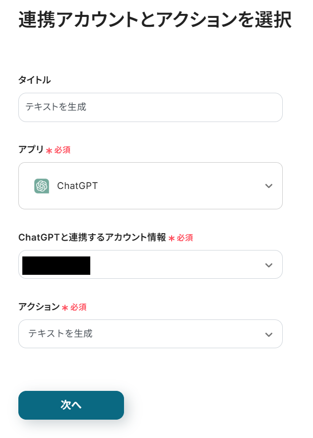 前項で取得した値から、ChatGPTでテキストを生成する設定を行います。