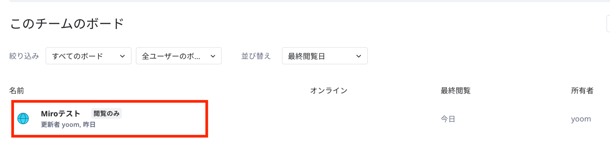 Miroのアイコンから「ボード名」をクリックします。