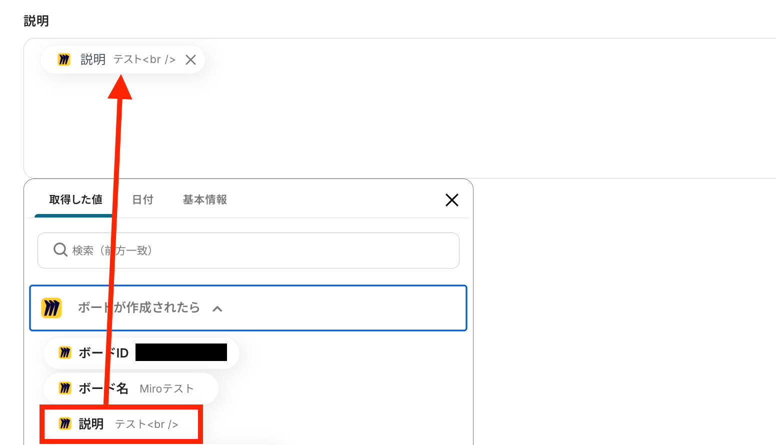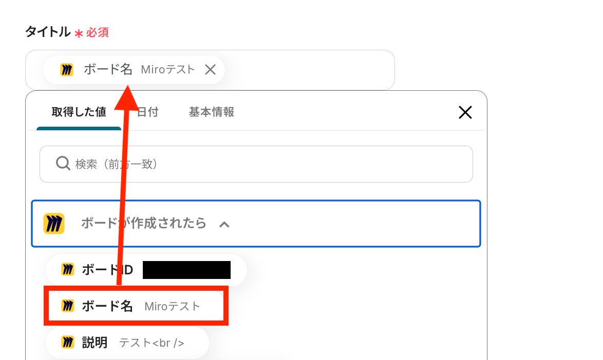 Miroから取得した値を利用して、Wrikeでタスクを作成する設定を行います。