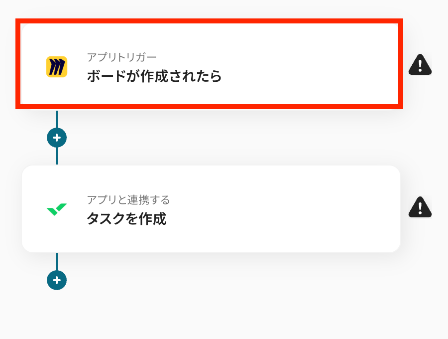 トリガーアクションは、テンプレート通りに「ボードが作成されたら」のままで大丈夫です。