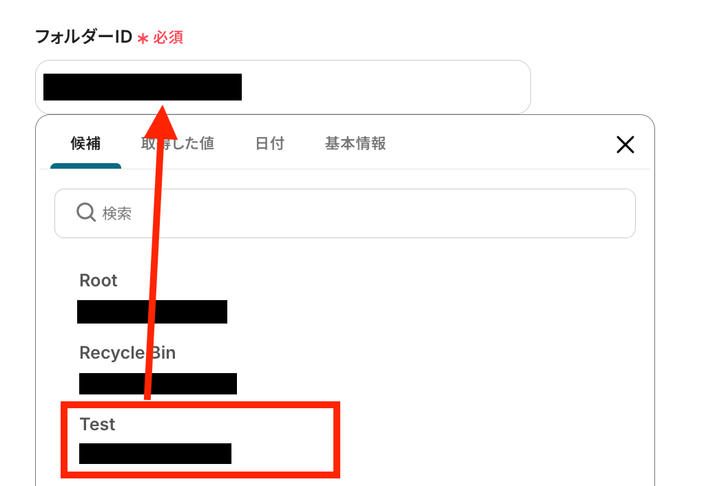 フォルダーIDを候補の中から選択しましょう。