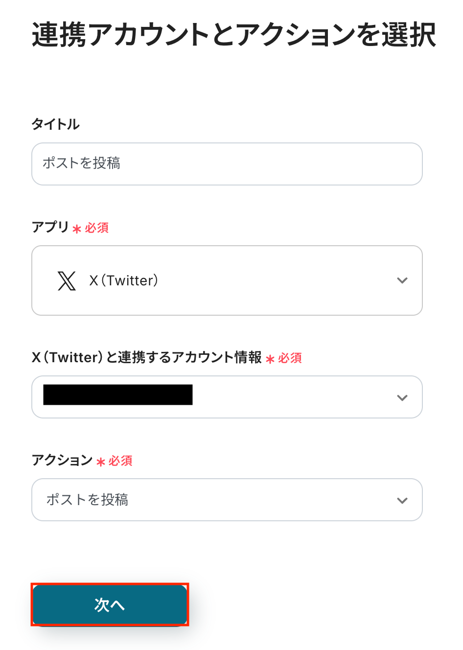 ステップ4: X(Twitter)のアクション設定