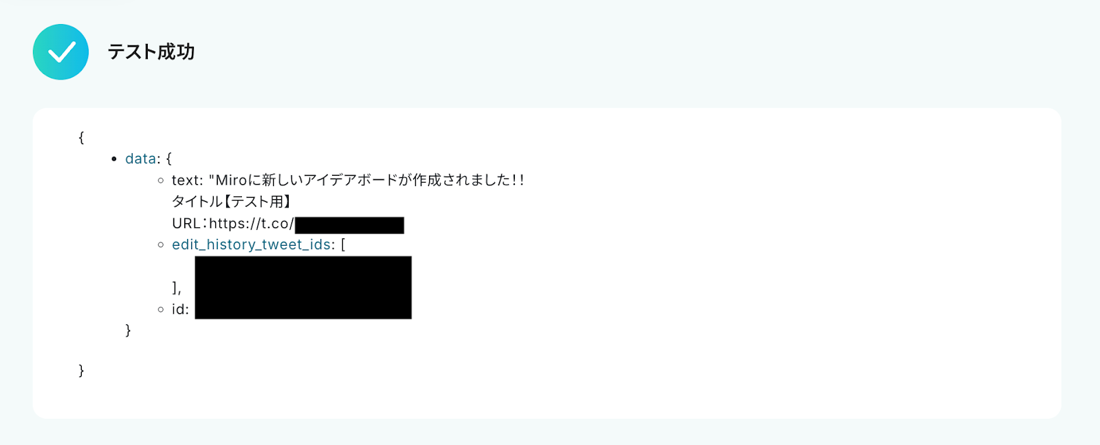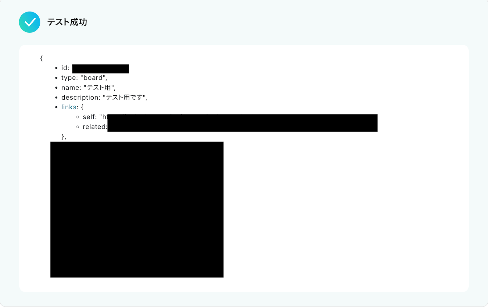 テストに成功すると、Miroに作成された新しいボードに関する情報が一覧で表示されます。