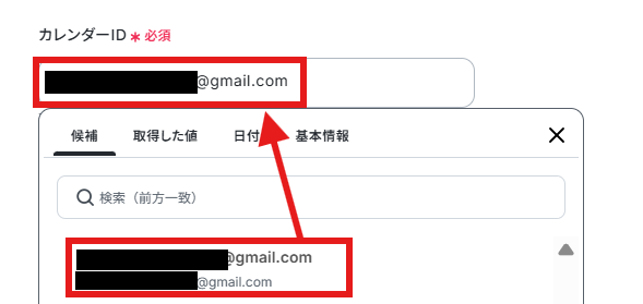 ステップ4と同様に、カレンダーIDを候補から選択します。