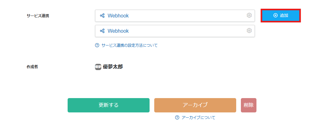 サービス連携の「追加」ボタンをクリックします。
