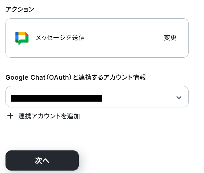 Google Chat(OAuth)と連携するアカウント情報を確認したら、次のページに進みましょう。
