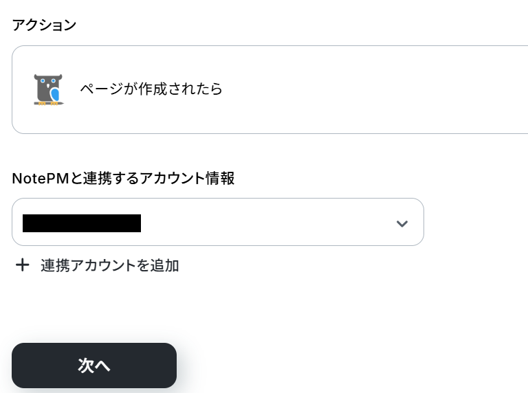 NotePMと連携するアカウント情報を確認し、次のページに進んでください。