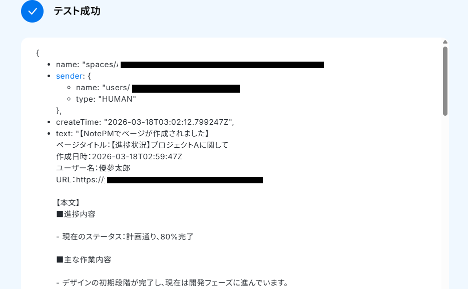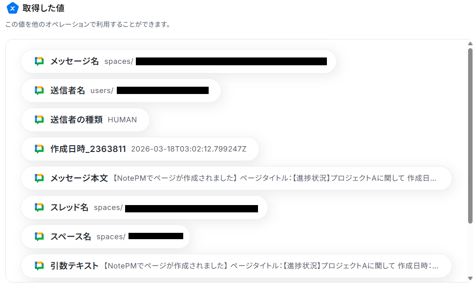 「NotePMでページが作成されたらGoogle Chatで通知する」 フローの完成です!