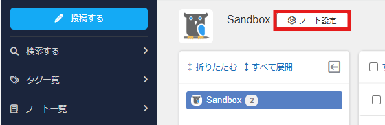 NotePMの該当のノートを開き、「ノート設定」をクリックしてください。