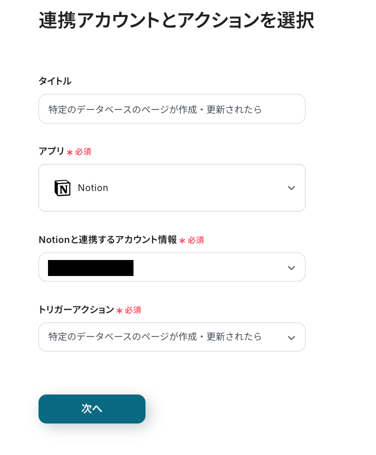 ステップ3:Notionのトリガー設定