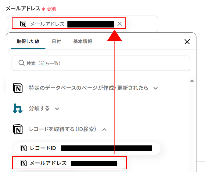 「レコードを取得する(ID検索)」をクリックしてください。