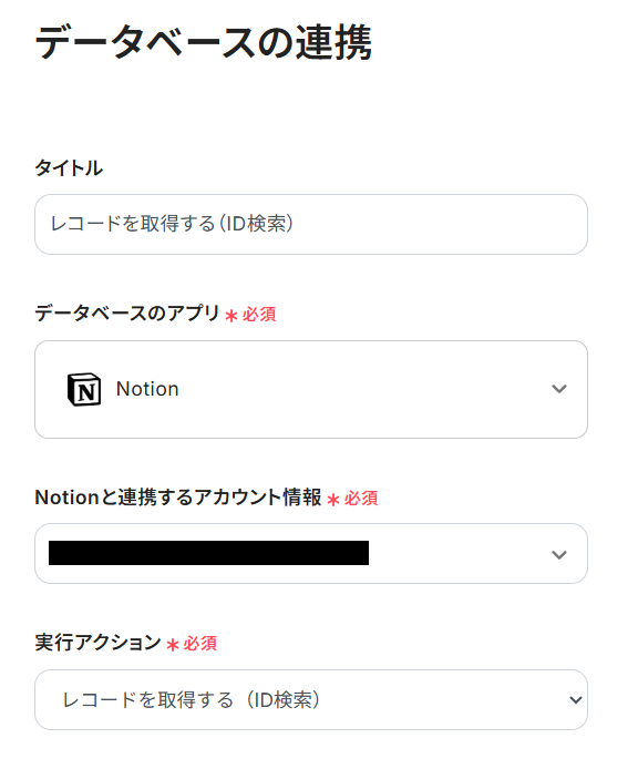 ステップ5:Notionのレコードを取得する(ID検索)設定