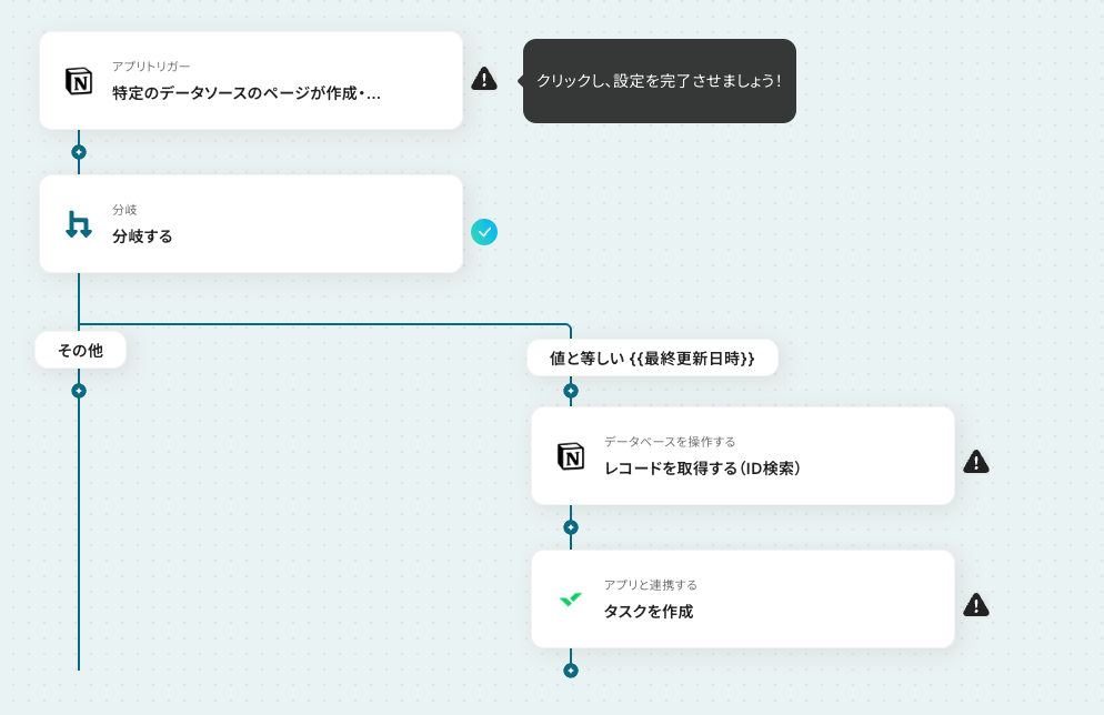 これでトリガーとなる「特定のデータソースのページが作成・更新されたら」という条件を満たしたことになります!