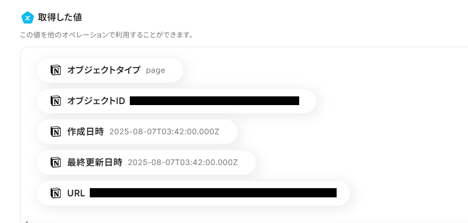 取得した値を使うことによって、後でデータベースにページが新規作成された際、作成日時などの情報が最新のものに更新されます。