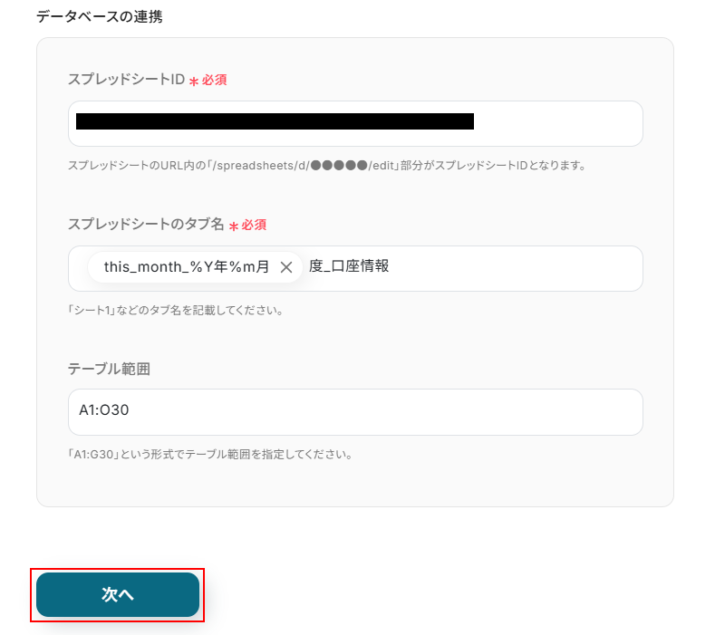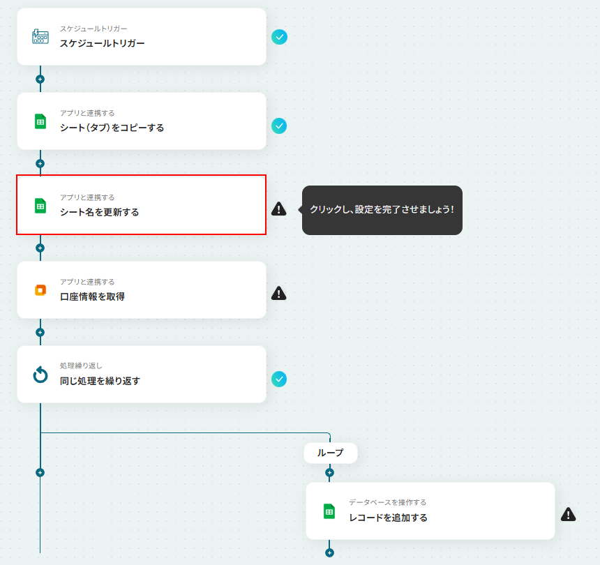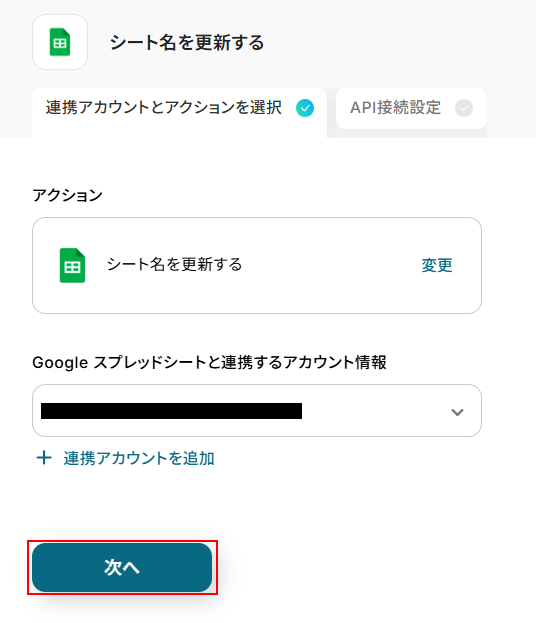 ステップ5:Google スプレッドシートのシート名を更新する設定