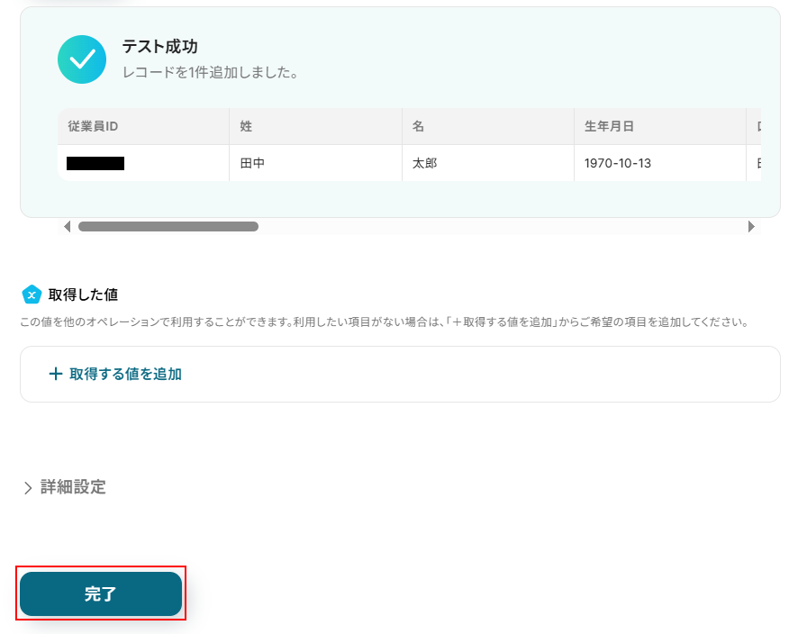 設定できたら完了をクリックしてください。