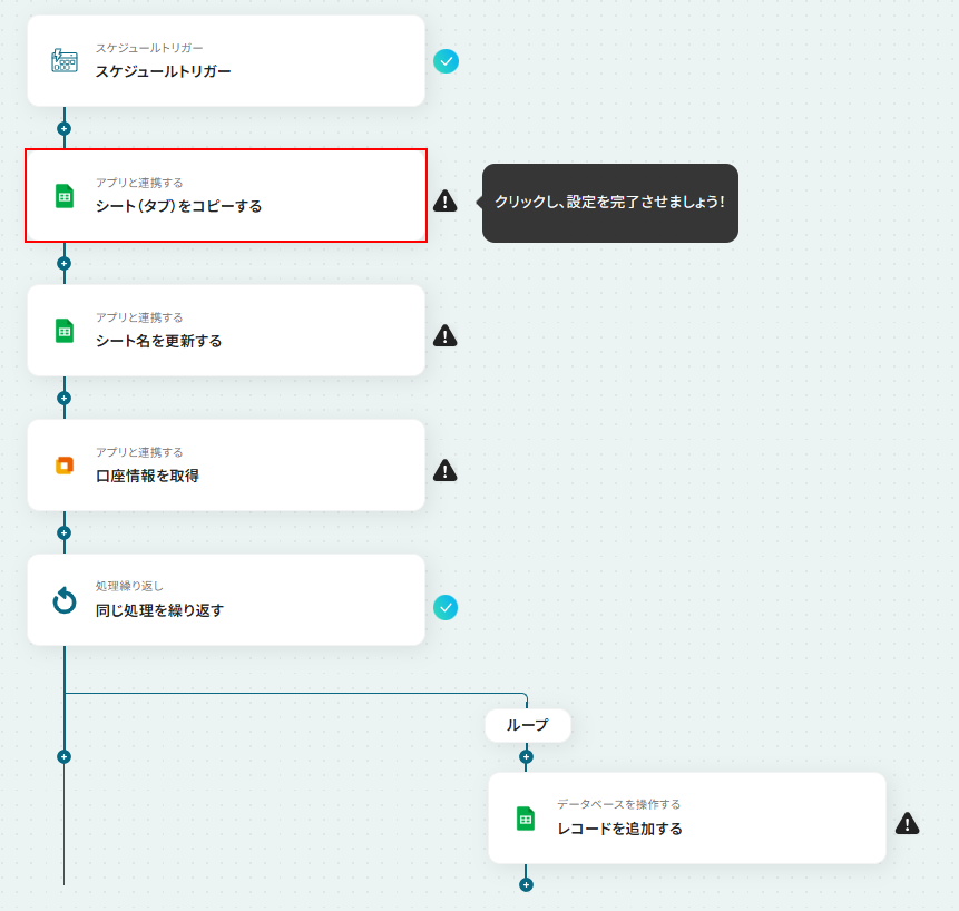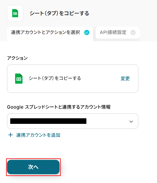 ステップ4:Google スプレッドシートのタブ(シート)をコピーする設定