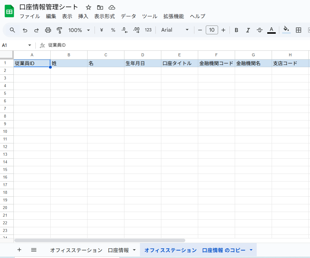 そのため、まずはコピー元となるシートを用意しましょう。