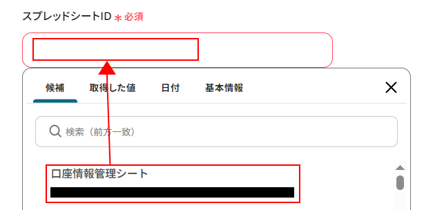 入力欄をクリックし、先ほどシートを保存したスプレッドシートを選択します。