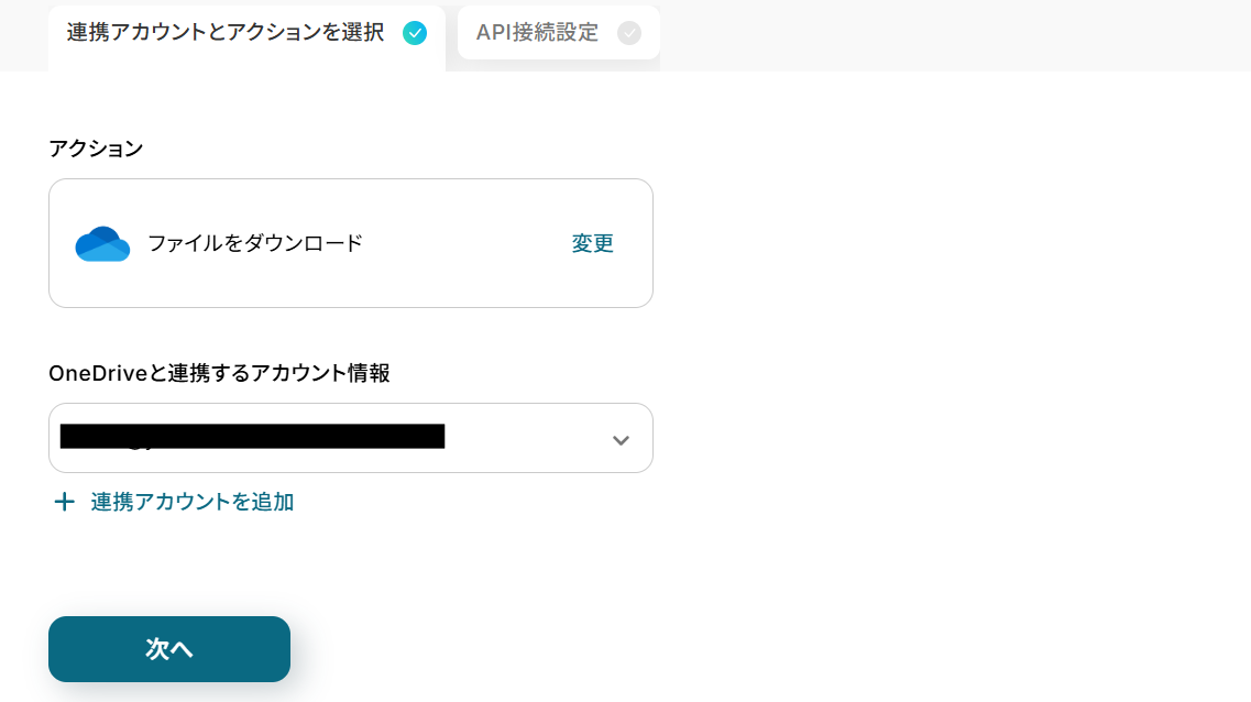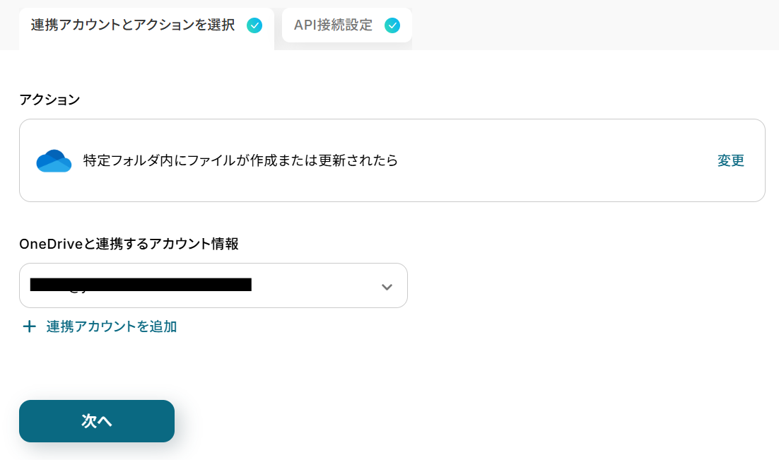 連携するアカウントを確認したら、アクションは変更せず「次へ」をクリックします。