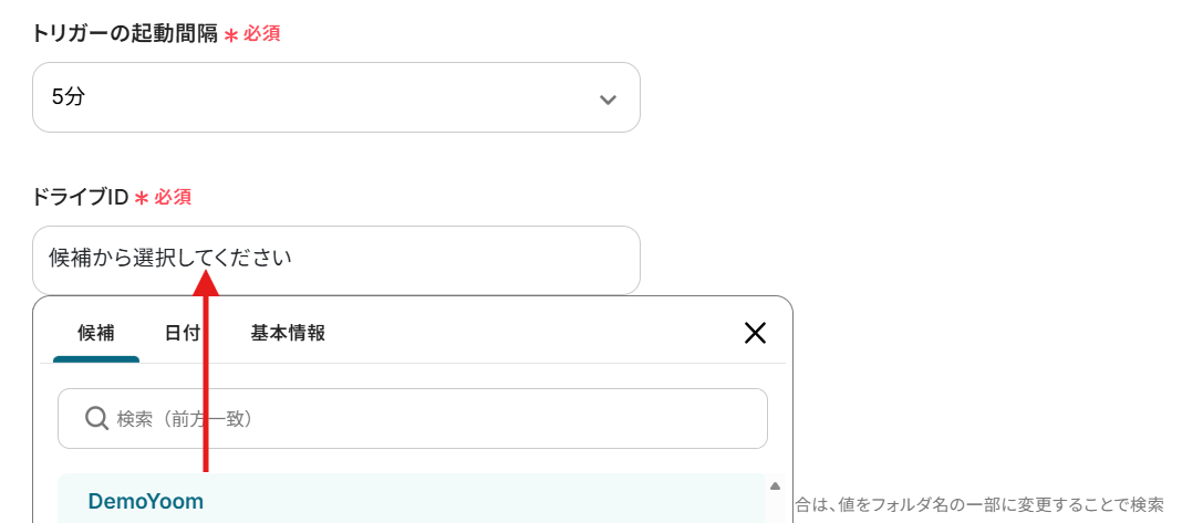 - トリガーは5分、10分、15分、30分、60分の間隔で起動間隔を選択できます。
