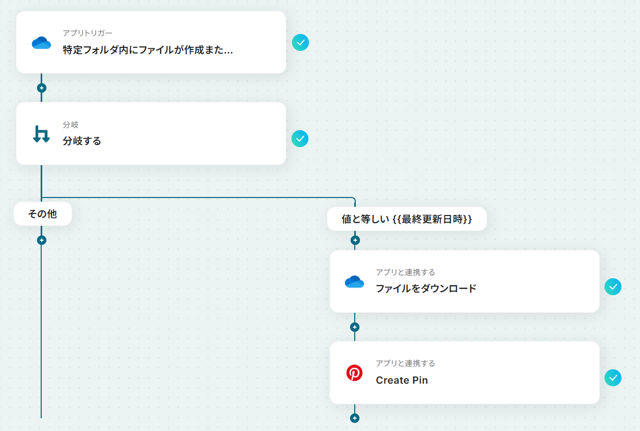 - OneDriveのトリガー設定およびPinterestのアクション設定