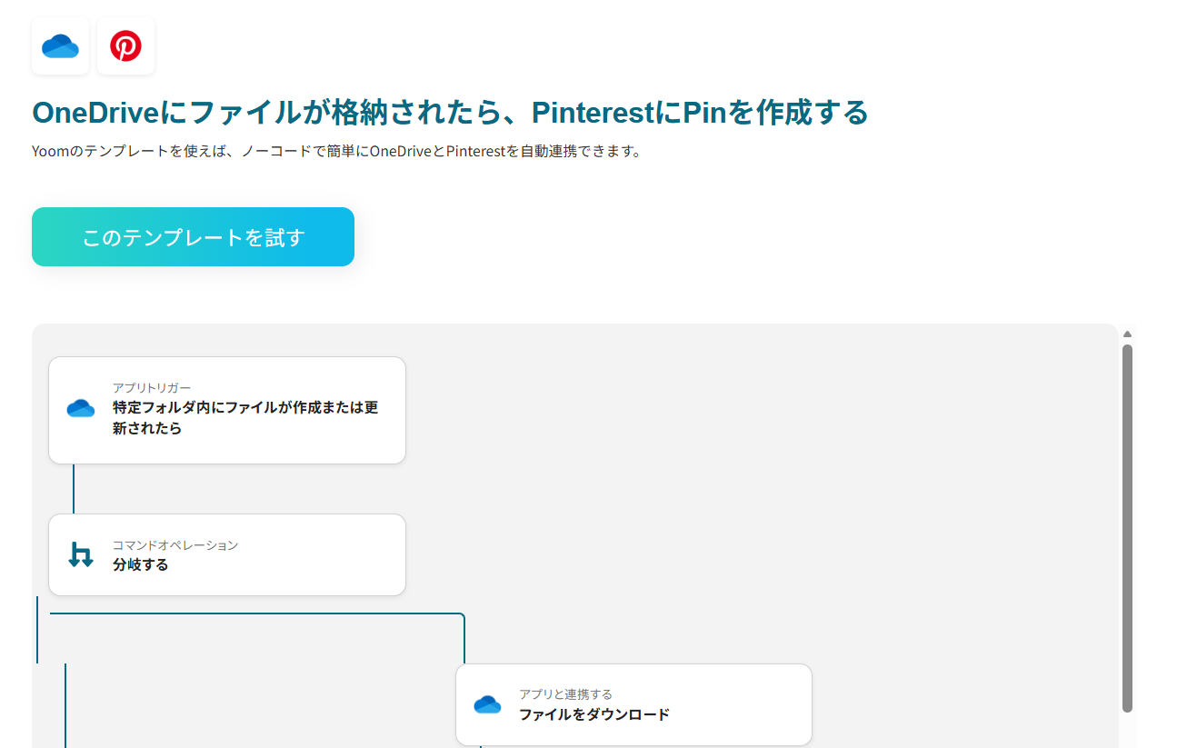 YoomにはOneDriveとPinterestを連携するためのテンプレートが用意されているので、今すぐ試したい方は以下よりバナーをクリックしてスタートしましょう!