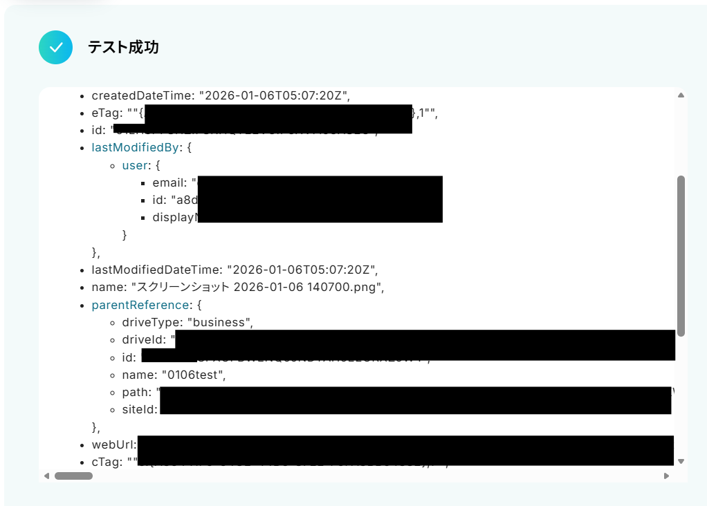 トリガーやオペレーション設定時に、「テスト」を実行して取得した値のことを指します。