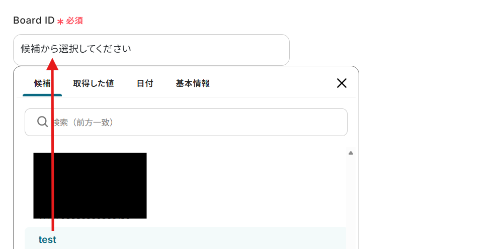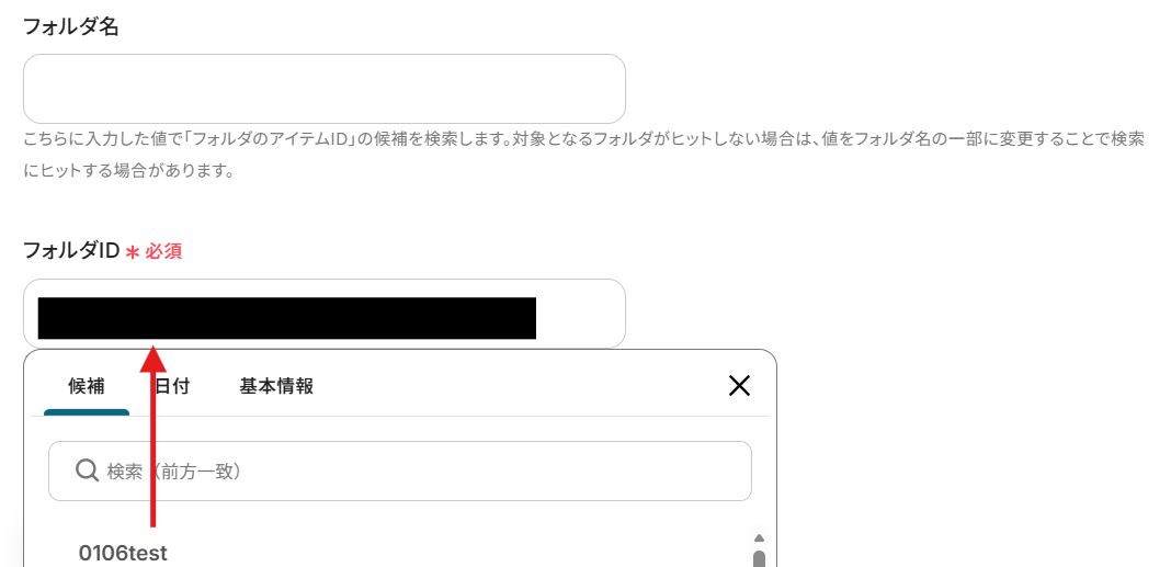 アイテムIDの「取得した値から選択してください|例)」は削除してください。