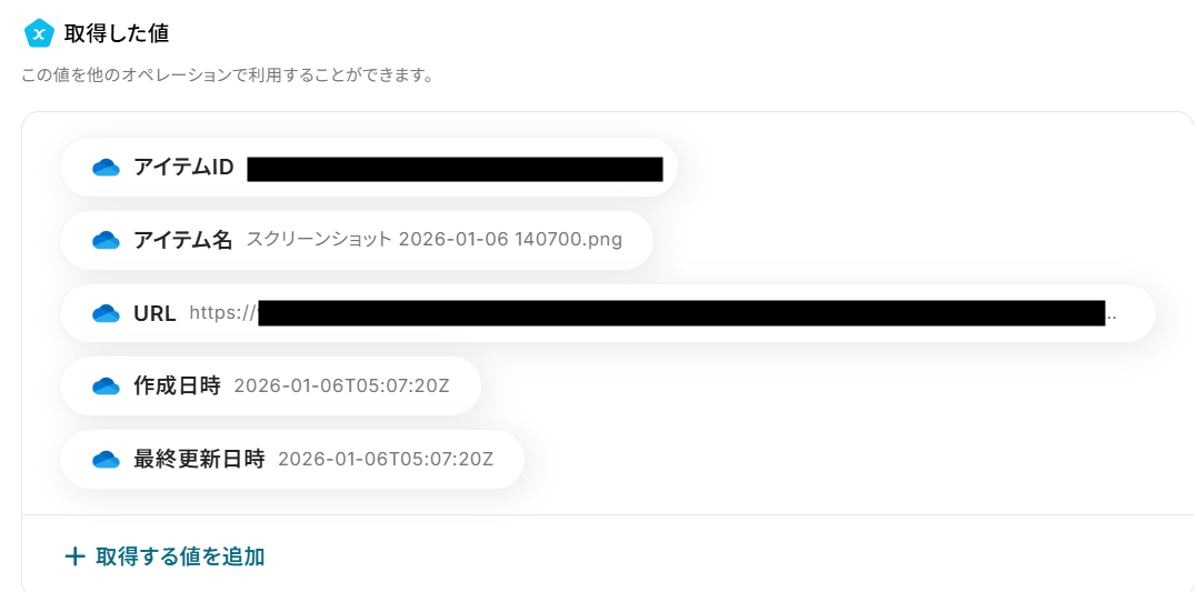 取得した値を利用することで、トリガーが起動するたびに最新の値を自動で引用できます