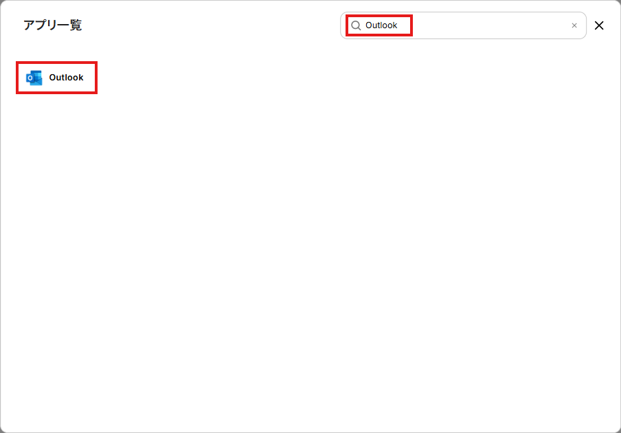 検索ボックスにOutlookと入力し、Outlookのアイコンをクリックします。