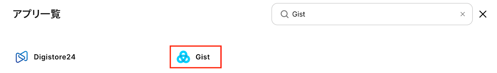 新規接続をクリックしたあと、アプリのメニュー一覧が表示されるのでGistと検索し、対象アプリをクリックしてください。