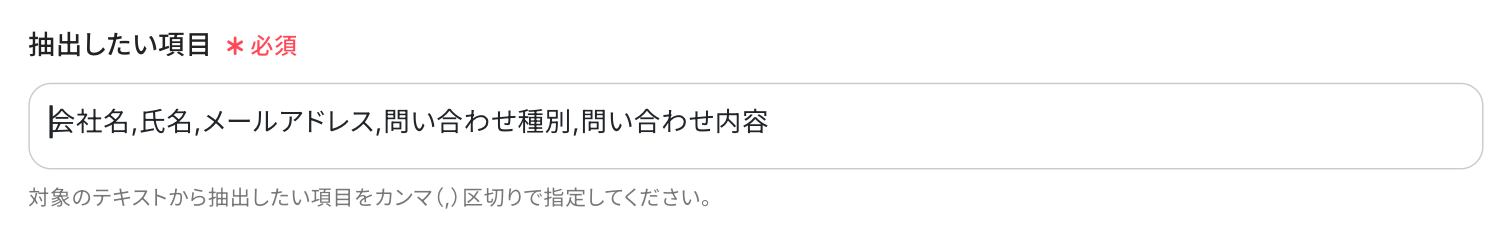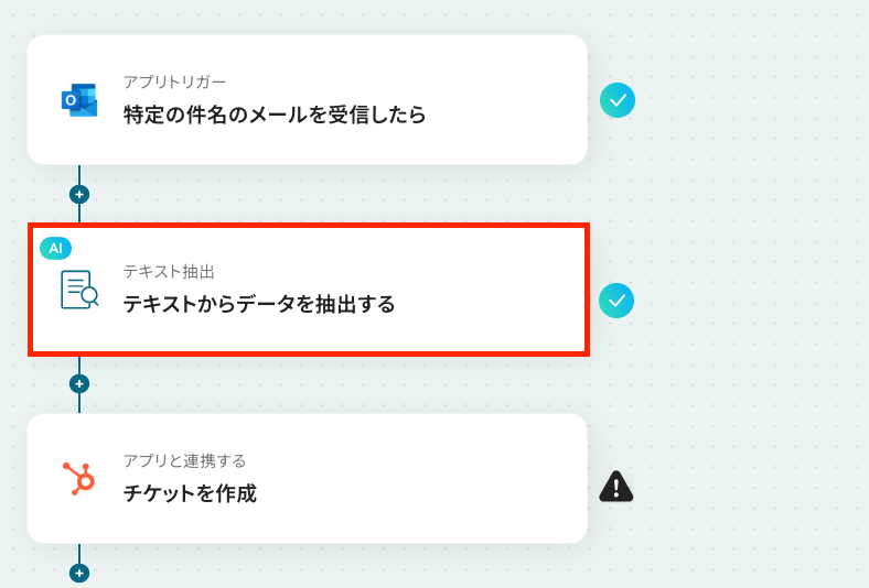 - 次に、オペレーションで「テキストからデータを抽出する」を選択し、受信したメール本文からチケット作成に必要な情報を抽出するよう設定します。
