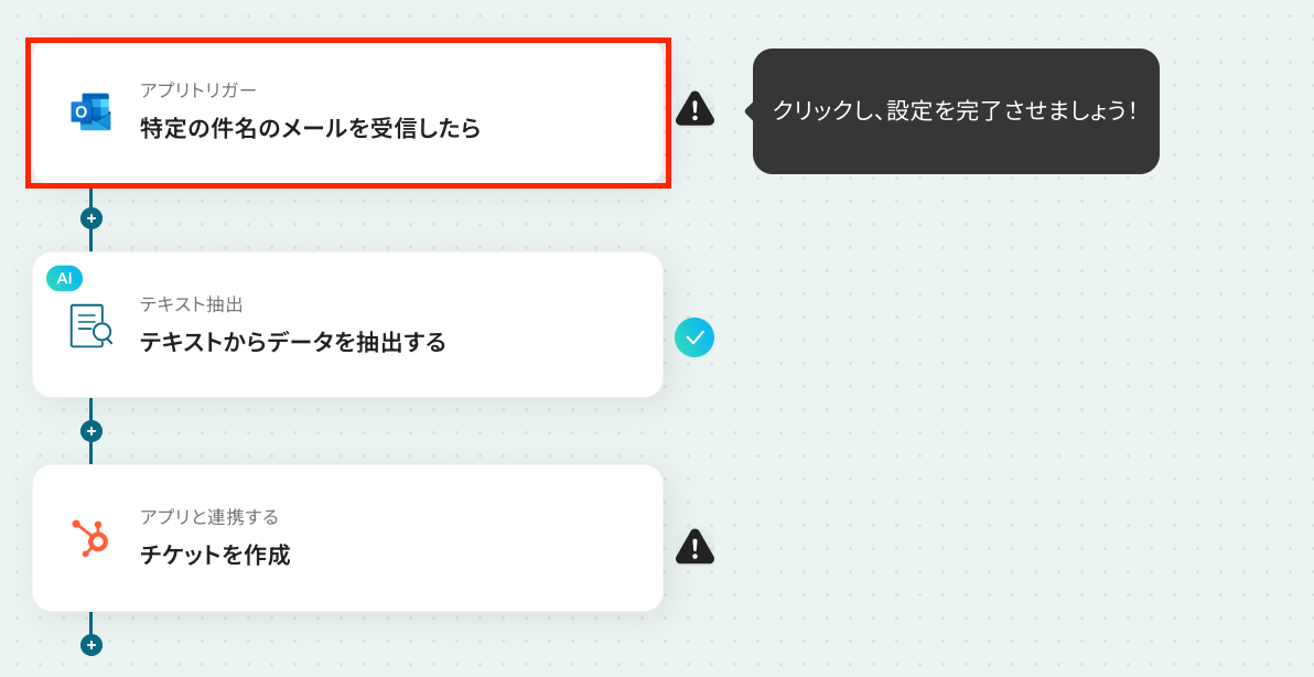 ここから「Outlookのメール内容をもとにHubSpotにチケットを作成する」フローを設定していきます!