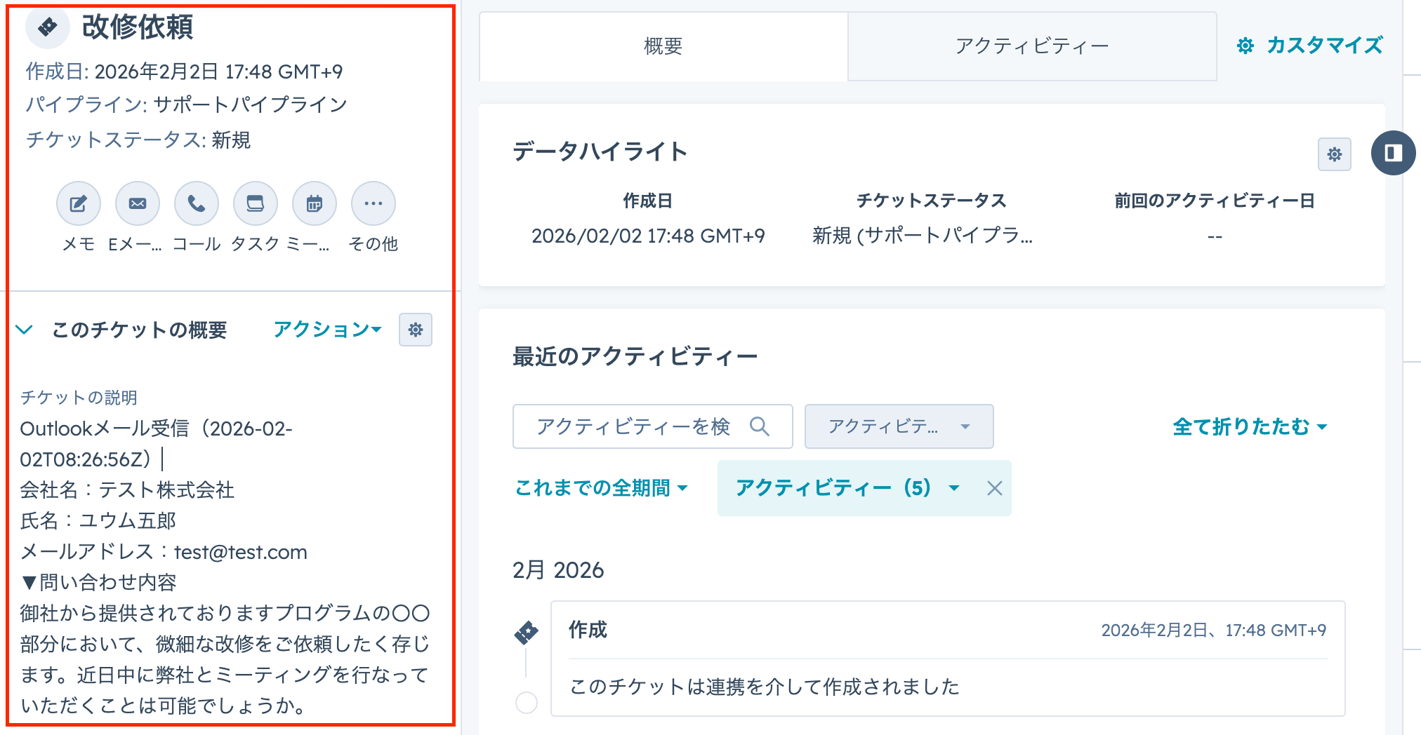 Outlookのメール内容をもとにHubSpotにチケットを作成する
