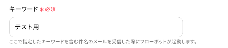 ※ここで指定したキーワードを含む件名のメールを受信した際にフローボットが起動します。