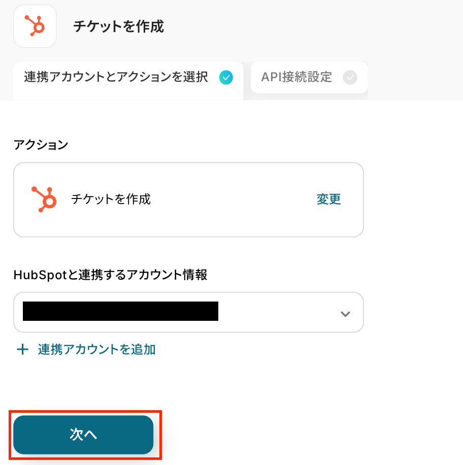 ここでは、HubSpotにチケットを作成する設定を行います。