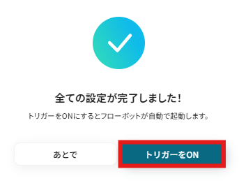 以下の画面が表示されるので、「トリガーをON」をクリックしたら、自動化の設定は完了となります。