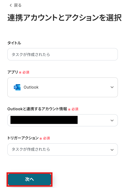 ステップ3:Outlookのトリガー設定