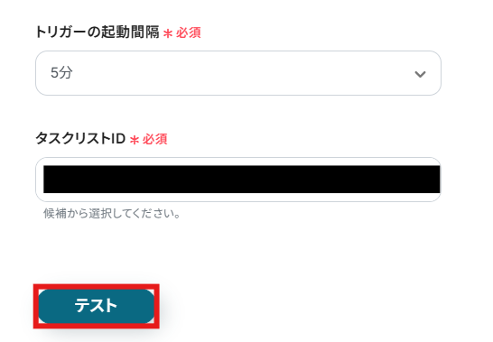 設定が完了したらテストボタンをクリックしましょう。(※実際にTogglにタスクが作成されます。)