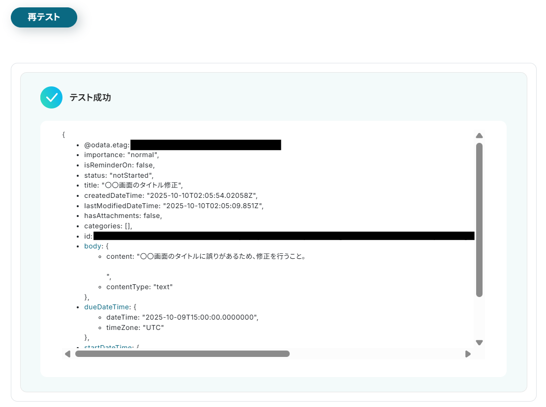 このワークフローを活用すれば、TogglとOutlookの連携がスムーズになり、Outlookでタスクが作成されると、Togglにも自動でタスクが作成されるようになります。
