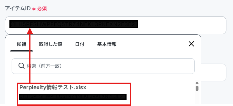 ※ファイル名は、アイテムIDの候補に対象のファイル名が表示されない場合に入力してください。