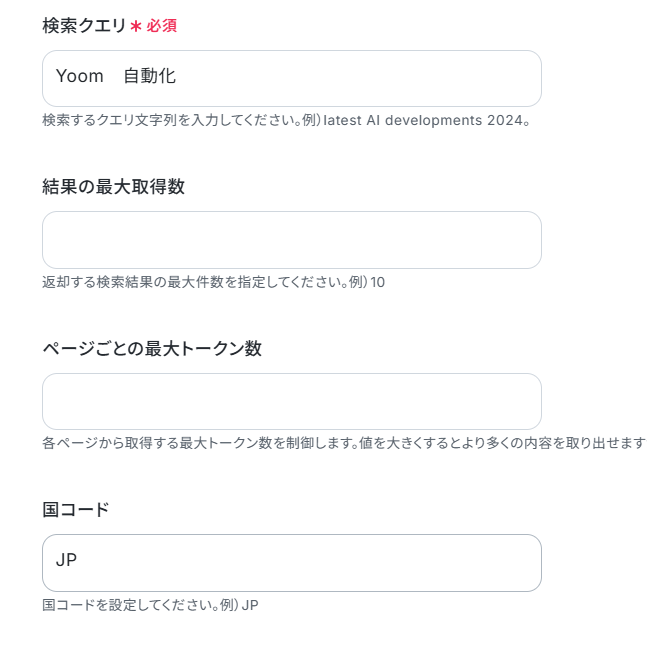 Airtableのトリガー設定では、自動化の対象としたいベースID、テーブルID、およびレコードの作成日時を識別するためのフィールド名を任意で設定してください。 Perplexityでの検索オペレーションでは、用途に応じて最適なモデルを選択したり、検索精度を高めるためにプロンプトを任意の内容に設定することが可能です。 Gmailでの通知設定では、通知先を自由に設定できるほか、メールの本文にAirtableの登録情報やPerplexityの検索結果などを変数として埋め込むことが可能です。 ■注意事項