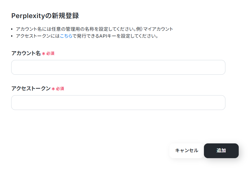 Perplexityの「情報を検索(AIが情報を要約)」アクションでは、使用したいモデル名を任意で設定し、システムプロンプトとユーザープロンプトは情報収集・解析したい内容に合わせて設定してください。 Perplexityの「テキストを生成」アクションでは、任意のモデル名、ロール、そして生成したい内容を具体的に設定してください。 Slackの「チャンネルにメッセージを送る」アクションでは、通知先として任意のチャンネルIDを設定してください。 ■注意事項