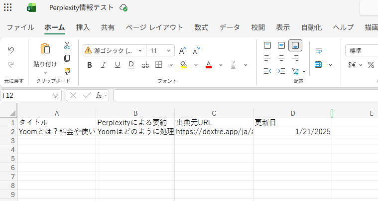 定期的にPerplexityで情報を検索してMicrosoft Excelに記録する