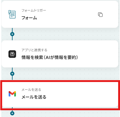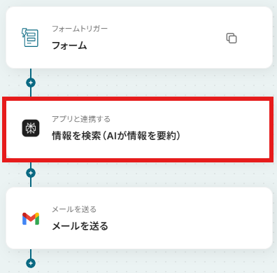 Perplexityの「情報を検索」アクションでは、フォームの回答内容などを用いて、任意のプロンプトを設定してください Gmailの「メールを送る」アクションでは、通知先のメールアドレスや件名を任意の値に設定し、本文にはPerplexityの検索結果などを含めてください ■注意事項